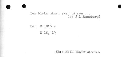 //// Den bleka månen sken på mon ... //// (av J.L.Runeberg) //// Se: E 1846 s //// * //// M IS, 19 //// [ KB:s SKILLINGTRYCKSREG. ////