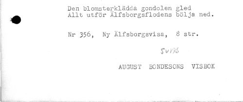 //// ^ Allt utför Älfsborgsflodens bölja ned. //// Nr 356, Ny Xlfsborgsvisa, 6 str. //// AUGUST BONDESONS VISBOK ////