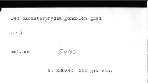 //// Den blomsterprydda gondolen gled //// t //// nr 6 //// i //// < //// i //// i //// i //// mel. not //// < //// t //// i //// S. EDUÄRD 200 g:a vis. //// ; //// & //// f //// ! ////