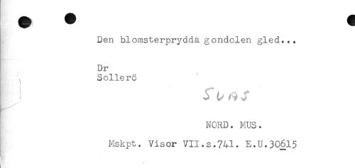 //// Den blomsterprydda gondolen gled... //// Dr //// Sollerö //// ! -f ^ J //// NORD. MUS. //// Mskpt. Visor VII.s.741. E.U.30615 ////