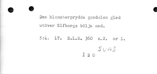 //// Den blomsterprydda gondolen gled //// utöver Elfborgs bölja ned. //// 5:4- LT. S.L.S. 360 s.2. nr 1. //// ÅBO ////