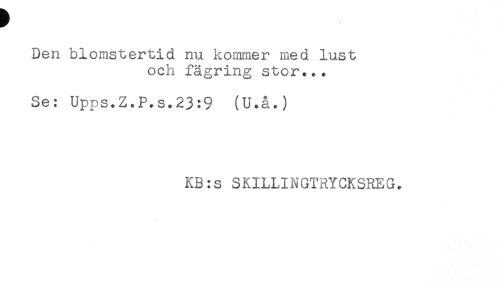//// Den blomstertid nu kommer med lust //// och fägring stor... //// Se: Upps.Z.P,s.23:9 (U.å.) //// KB:s SKILLINGTRYCKSREG. ////