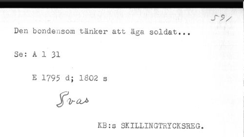 //// Den bondensom tänker att äga soldat... //// t //// ; //// Se: Ål 31 //// E 1795 d; 1602 s , //// i //// < //// i //// < //// KB:s SKILLINGTRYCKSREG. ////