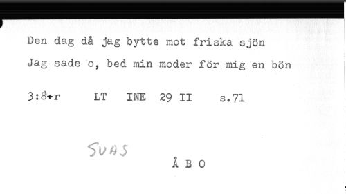 //// Den dag då jag bytte mot friska sjön //// Jag sade o, bed min moder för mig en bön //// 3:3+r LT INE 29 II s.71 //// i ////