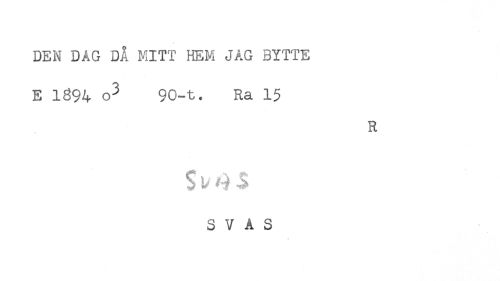 //// DEN DÅG DÅ MITT HEM JAG BYTTE //// E 1694 o3 90-t. Ra 15 //// R //// S V A S ////