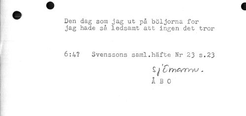 //// ^ Den dag som jag ut på böljorna for //// jag hade så ledsamt att ingen det tror //// 6:4? Svenssons saml.häfte Nr 23 s.23 //// ÅBO //// t ////
