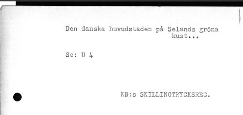 //// Den danska huvudstaden på Selands gröna //// kust... //// Se: U 4 //// ^ KB:s SKILLINGTRYCKSREG. ////