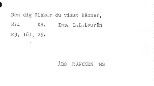 //// ) //// ! //// Den dig älskar du visst känner, //// KH. Ins. L.L.Lauren //// R3, 161, 25. //// Å30 RANCKEN MS //// ) //// ! //// : ////