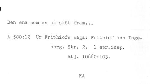 //// Den ena som en ek sköt fram... //// Å 500:12 Ur Frithiofs saga: Frithiof och Inge- //// borg. Str. 2. 1 str.insp. //// Rtj. 10660:103. //// RÅ ////