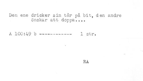 //// Den ene dricker sin tår på bit, den andre //// önskar att doppa.... //// A 100:49 b --- - --- - i str. //// RÅ ////