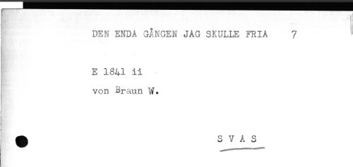 //// DEN ENDÅ GÅNGEN JÅG SKULLE FRIA 7 //// E 1841 ii - //// von Braun W. //// j //// ^ S V A S ////