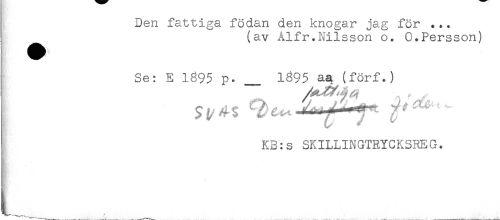 //// jjen lci^uiga loacLn aen Knogar jag lor ... //// (av Alfr.Nilsson o. G.Persson) //// Se: E 1895 p. _ 1895 aa (förf.) //// t ......^ ' ^ //// ! KB:s SKILLINGTRYCKSREG. ////
