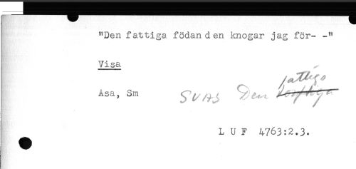 //// "Den fattiga födanden knogar jag för- //// * //// Visa //// Åsa, Sm S^^. ^ //// ^ L U F 4763:2.3. ////