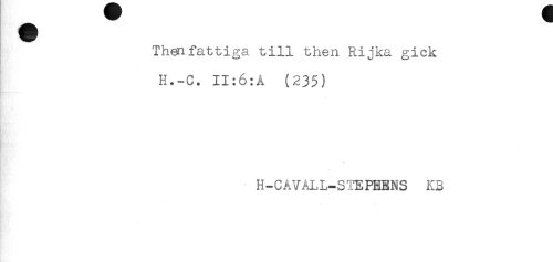 //// Thenfattiga till then Rijka gick //// H.-C. II:6:A (235) //// H-CAVALL-STEPEENS K3 //// - ////