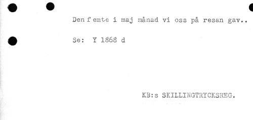//// Den femte i maj månad vi oss på resan gav.. //// ^ Se: Y 1863 d //// KB:s SKILLINGTRYCKSREG. ////