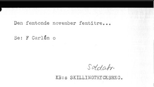 //// r //// Den femtonde november femtitre... //// Se: F Carlån o //// i //// i //// KB:s SKILLINGTRYCKSREG. ////