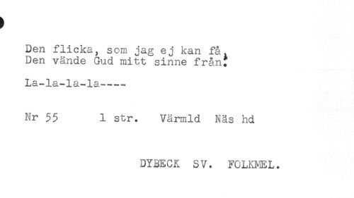 //// ) //// Den flicka, som jag ej kan få. //// Den vände Gud mitt sinne från. //// La-la-la-la---- //// Nr 55 1 str. Värmld Näs hd //// DYBECK SV. FOLKMBL. ////