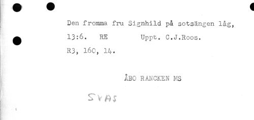 //// Den fromma fru Signhild på sotsängen låg, //// ^ 13:6. RE Uppt. C.J.Roos. //// R3, 16c, 14. //// j ÅBO RANCKEN MS ////