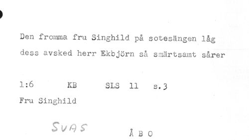 //// Den fromma fru Singhild på sotesängen låg //// dess avsked herr Ekbjörn så smärtsamt sårer //// t //// 1:6 KB SLS 11 s.3 //// Fru Singhild //// A B 0 ////