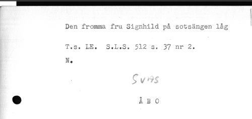 //// Den fromma fru Signhild på sotsängen låg //// T.s. LE. S.L.S. 512 s. 37 nr 2. //// N. ////