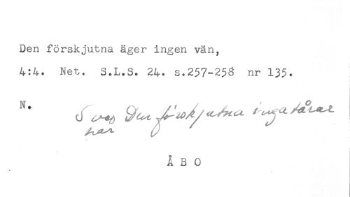 //// Den förskjutna äger ingen vän, //// 4:4. Net. S+L.S* 24* s.257-258 nr 135. //// t //// t ////