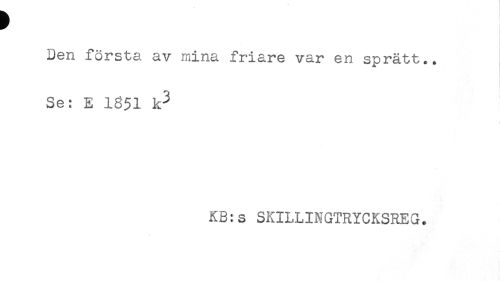 //// Den första av mina friare var en sprätt.. //// Se: E 1651 k^ //// KB:s SKILLINGTRYCKSREG. ////