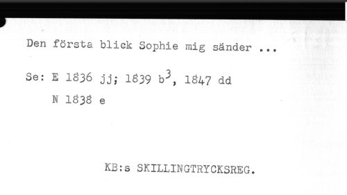 //// Den första blick Sophie mig sänder ... //// Se: E 1836 jj; 1839 b3, 1847 dd //// N 1838 e //// KB:s SKILLINGTRYCKSREG. ////