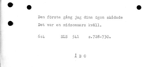 //// q //// ) //// } Den första gång jag dina ögon skådade //// * Det var en midsommars kväll. //// ! //// 6:4 SLS 541 s.728-730. //// ÅBO //// T.'!''--/' * ////