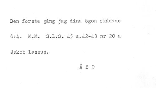 //// Den första gång jag dina ögon skådade //// 6:4. M.M* S.L*S. 45 s.42-43 nr 20 a //// Jakob Lassus. //// ÅBO ////