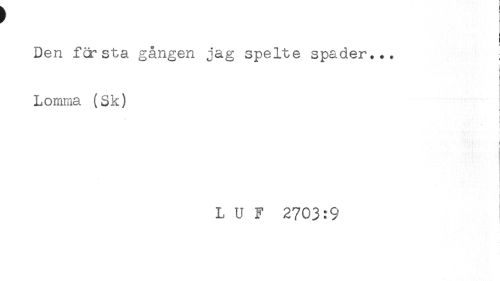 //// Den första gången jag spelte spader.*. ! //// i //// Lomma (Sk) //// i //// ! //// t //// ! //// L U F 2703:9 ////