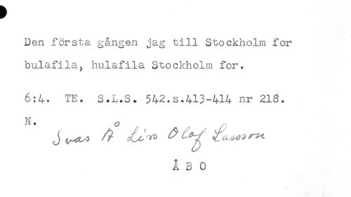 //// Den första gången jag till Stockholm for //// bulafila, hulafila Stockholm for. //// 6:4. TE. S.L.S. 542.s.413-414 nr 2lS. //// N. p //// Å B 0 ////