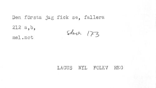 //// Den första jag fick se, fallera //// 212 a,b, //// mel.not //// LAGUS NYL FOLKV REG ////