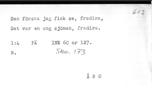 //// Den första jag fick se, fradira. //// Det var en ung sjöman, fradira. //// 1:4 PÄ INE 60 nr 12?. //// N. //// i //// ! //// < //// i ////