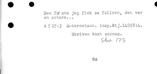 //// Den fcrsta jag fick se fallero, det var //// en sötare.*. //// I ^ A 525:3 Sotarevisan. insp.Rtj.14958:4. //// Skriven text saknas. //// RA ////