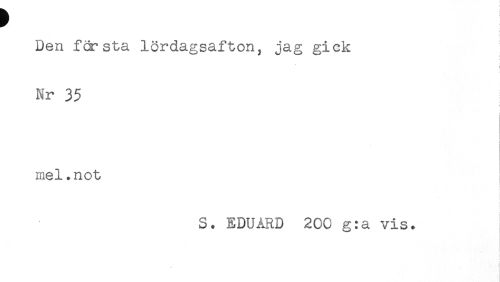 //// Den första lördagsafton, jag gick //// i //// Nr 35 //// < //// < //// ! //// mel.not //// i //// S. EDUÅRD 200 g:a vis. //// < ////