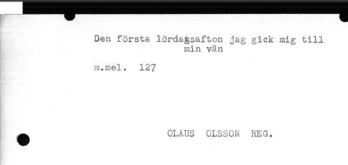 //// Den första lördagsafton jag gick mig till //// min vän //// - //// m.mel. 127 //// ! , - //// . //// . s //// ^ OLÅUS OLSSON REG. ////