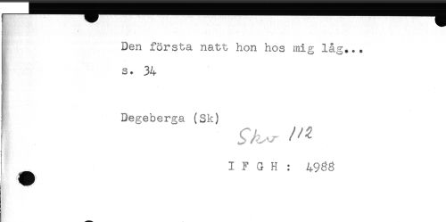 //// i Den första natt hon hos mig låg... //// s. 34 //// Degeberga (Sk) //// IFGH: 498g ////