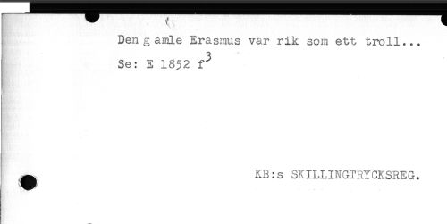 //// Den gamle Erasmus var rik som ett troll... //// Se: E 1352 f^ //// ^ KB:s SKILLINGTRYCKSREG. ////