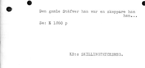 //// Den gamle Ståfver han var en skeppare han //// han... //// Se: E 1860 p //// KB:s SKILLINGTRYCKSREG. //// - . — — „ ////