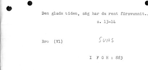 //// Den glada tiden, säg har du rent försvunnit., //// I s. 13-14 //// Bro (VI) //// I B' G H : 883 ////