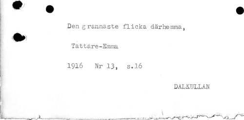 //// - //// I Den grannaste flicka därhemma, //// HR ^^^ //// ! Tattare-Emma //// ! 1916 Nr 13, s.16 //// DALKULLAN //// ' . ////