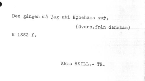 //// Den gången då jag uti K$behamn va&. //// f //// i //// (övers.från danskan) //// E 1382 f. //// < //// . //// KB:s SKILL.- TR. //// ä //// = ////