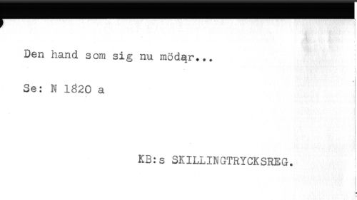 //// - //// * ' ga , <' //// Den hand som sig nu mödqr... //// Se: N 1820 a //// KB:s SKILLINGTRYCKSREG. //// < //// H ////