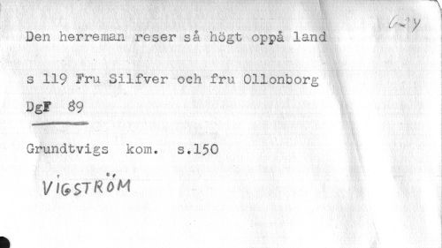 //// ' //// Den herreman reser så högt oppå land //// - //// - //// < //// s 119 Fru Silfver och fru Ollonborg //// DgF 39 //// i'---—TTrrxMDMar //// Grundtvigs kom. s.150 //// '.t //// - ////
