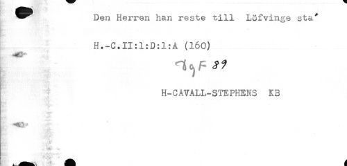 //// Den Herren han reste till Löfvinge sta* //// H //// H.-C.II:1:D:1:Å (160) //// 3MHM) t //// H-CÅVALL-STEPHENS KB //// E g ////