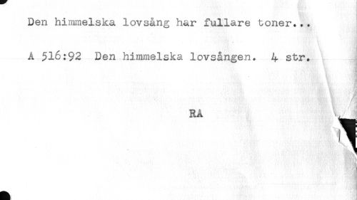 //// Den himmelska lovsång har fullare toner... //// * //// A 516:92 Den himmelska lovsången. 4 str. //// , //// § ^ a //// RA ////