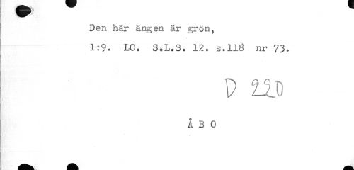 //// Den här ängen är grön, //// 1:9. LO. S.L.S. 12. s.118 nr 73* //// * //// ÅBO //// F' ////