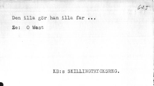 //// Den illa gör han illa far ... //// ! //// r //// Se: O West //// i //// < //// * //// * //// f //// ' C //// ! //// ] //// ! //// t //// KB:s SKILLINGTRYCKSREG. //// < //// — ////