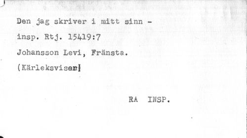//// Den jag skriver i mitt sinn - //// t. //// -< ' .... //// insp< Rtj. 15419:7 //// Johansson Levi, Fränsta. //// (Kärleksvisen^ //// .i* //// i //// r //// RA INSP. //// # ////