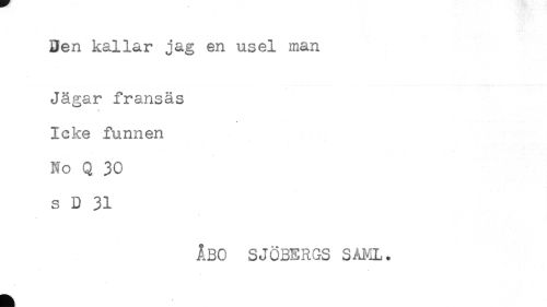 //// Den kallar jag en usel man //// Jägar fransäs //// Icke funnen //// No Q 30 //// s D 31 //// ÅBO SJÖBERGS SÅML. ////